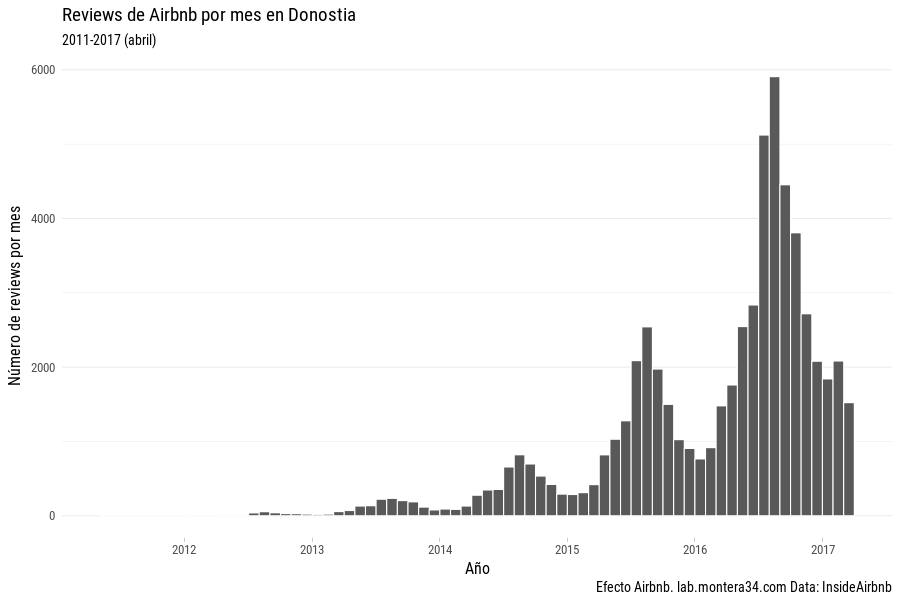 Este script escrito en R, review-analysis.R, analiza los reviews de una localización para estudiar estacionalidad y evolución de uso en base a un archivo de reviews de Insideairbnb: